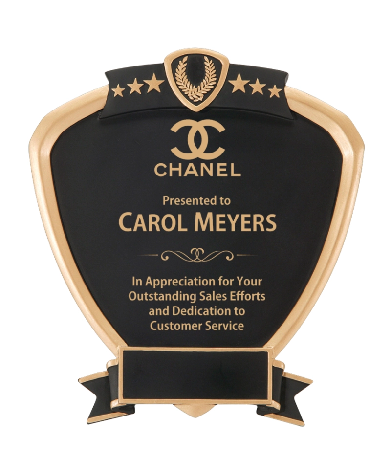 Our resin plaques are expertly crafted and personalized using either laser engraving.