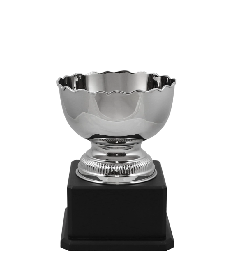 The front header engraving can be etched into the cup surface, or engraved on the base. This trophy is suitable as a perpetual award. We can engrave date and names on the cup back, or on the base.