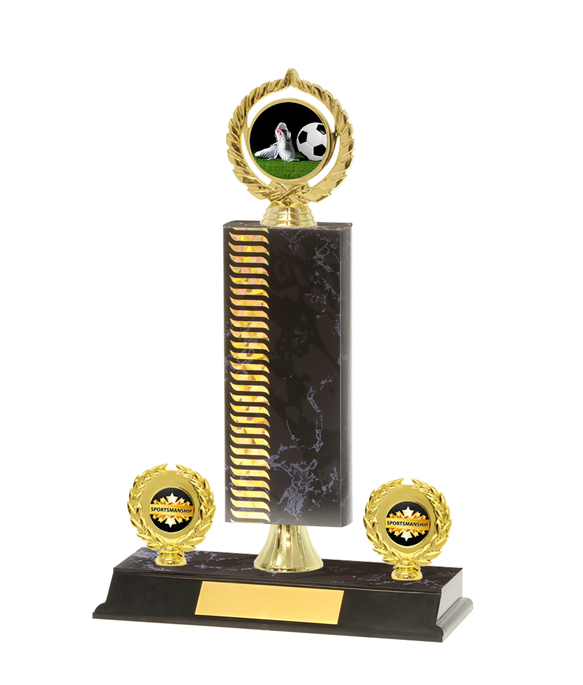 Our trophies are personalized using laser engraving (black print) on a gold engraving plate. When you select "Engraved - I will enter below" an engraving panel will appear below the Quantity field.