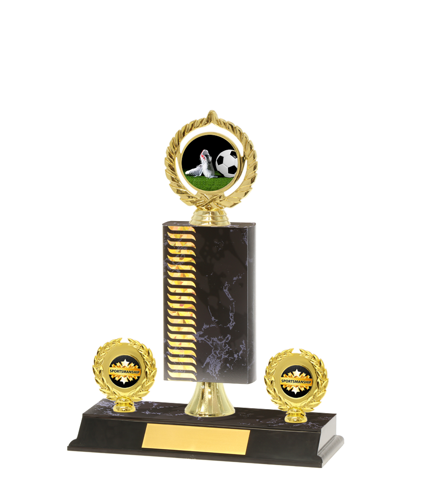 Our trophies are personalized using laser engraving (black print) on a gold engraving plate. When you select "Engraved - I will enter below" an engraving panel will appear below the Quantity field.