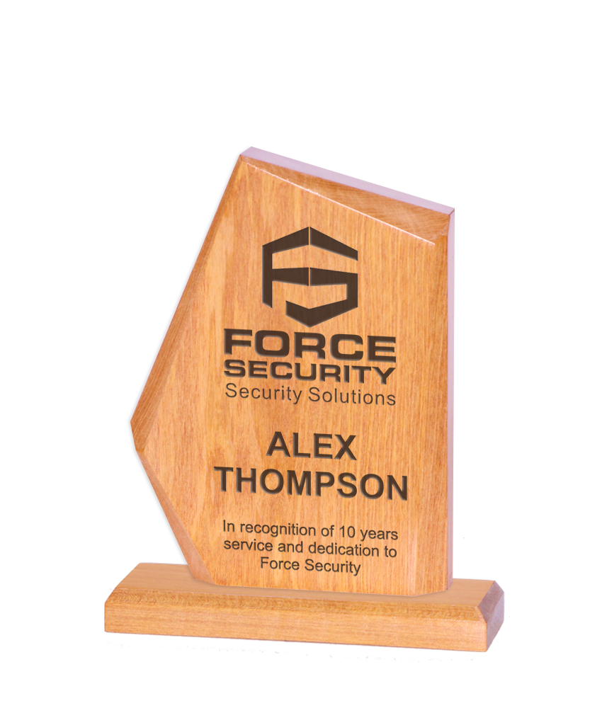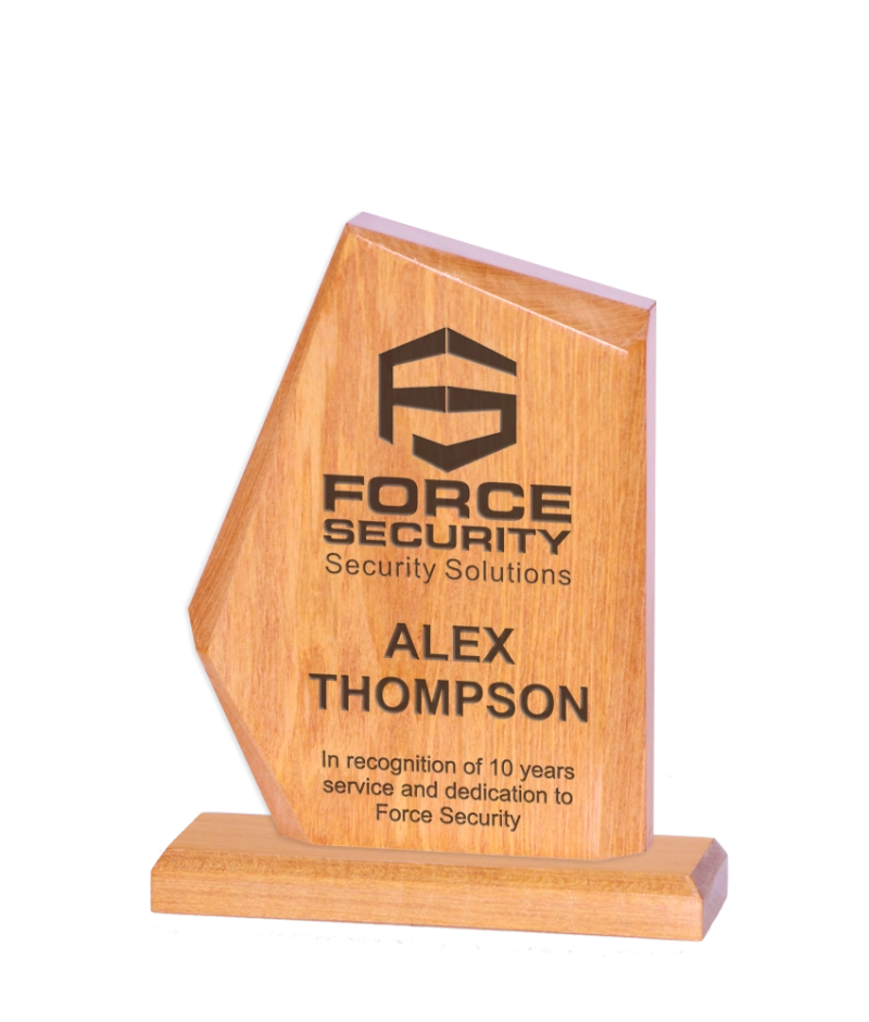 Our Solid Wood trophies are expertly crafted and personalized using either laser engraving or vibrant full-color printing.