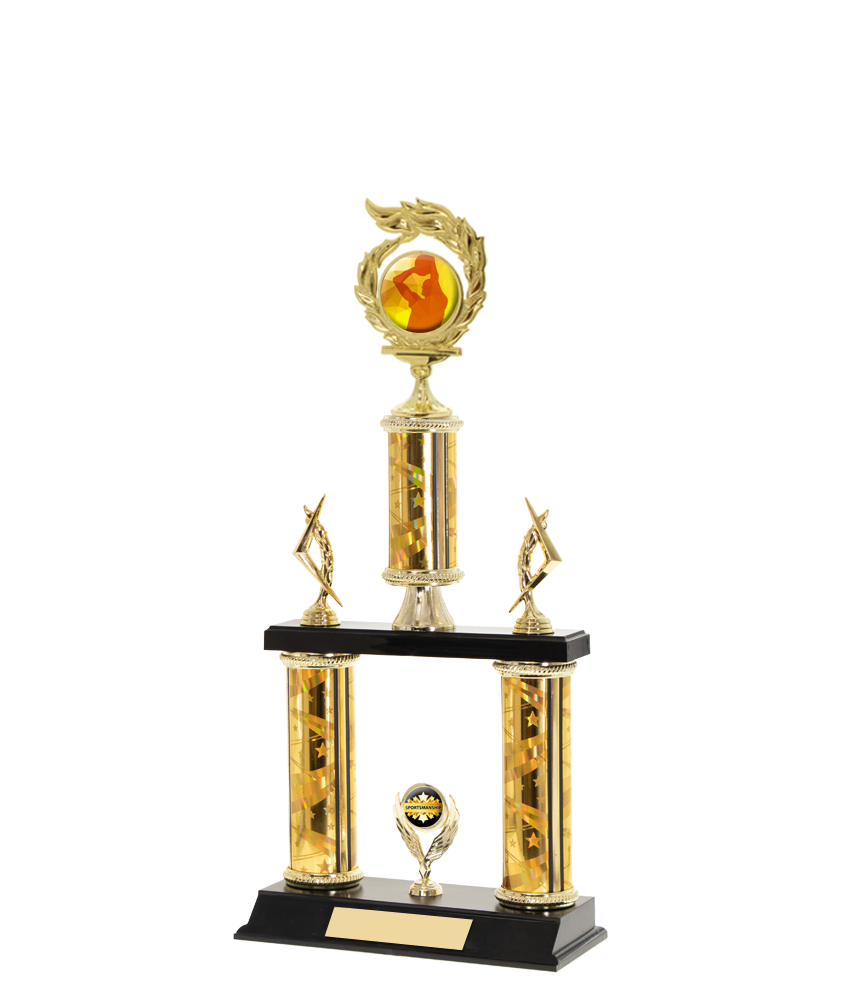 Our trophies are personalized using laser engraving (black print) on a gold engraving plate. When you select "Engraved - I will enter below" an engraving panel will appear below the Quantity field.
