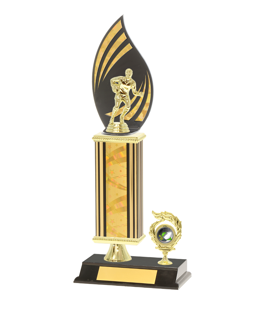 Our trophies are personalized using laser engraving (black print) on a gold engraving plate. When you select "Engraved - I will enter below" an engraving panel will appear below the Quantity field.