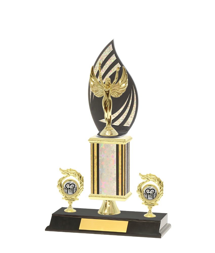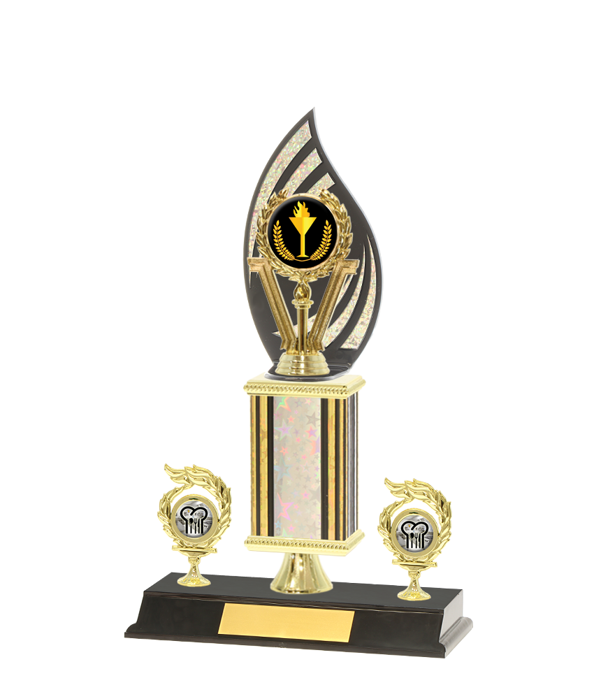 Our trophies are personalized using laser engraving (black print) on a gold engraving plate. When you select "Engraved - I will enter below" an engraving panel will appear below the Quantity field.