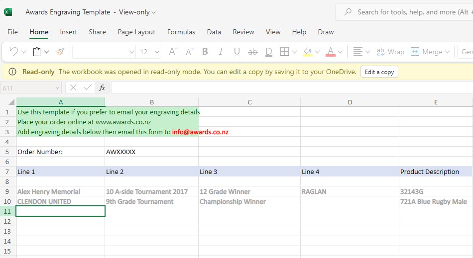 Prefer to email your engraving details? Download our Excel or CSV template below to fill out and email to us.